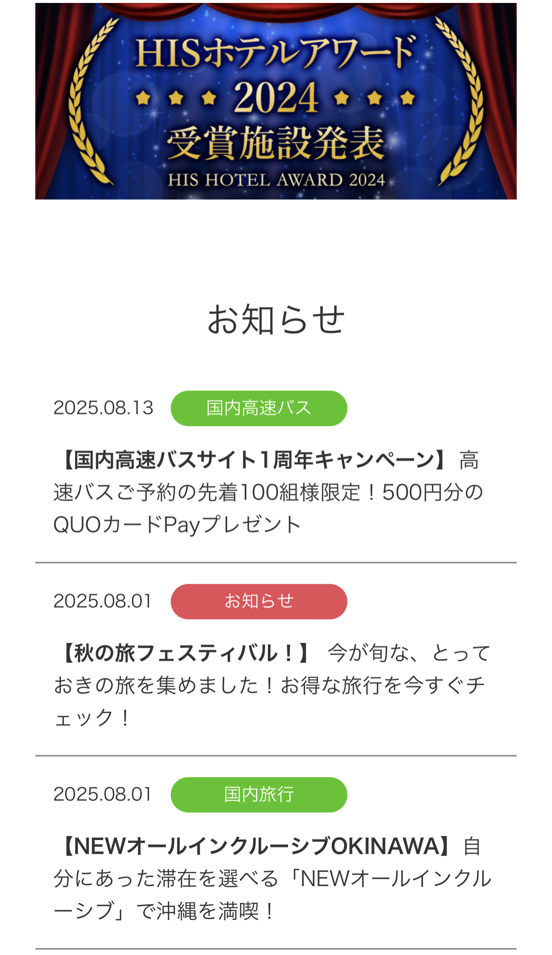 | HIS | 海外ツアー・セットプランが豊富 | 海外旅行を計画している方 |