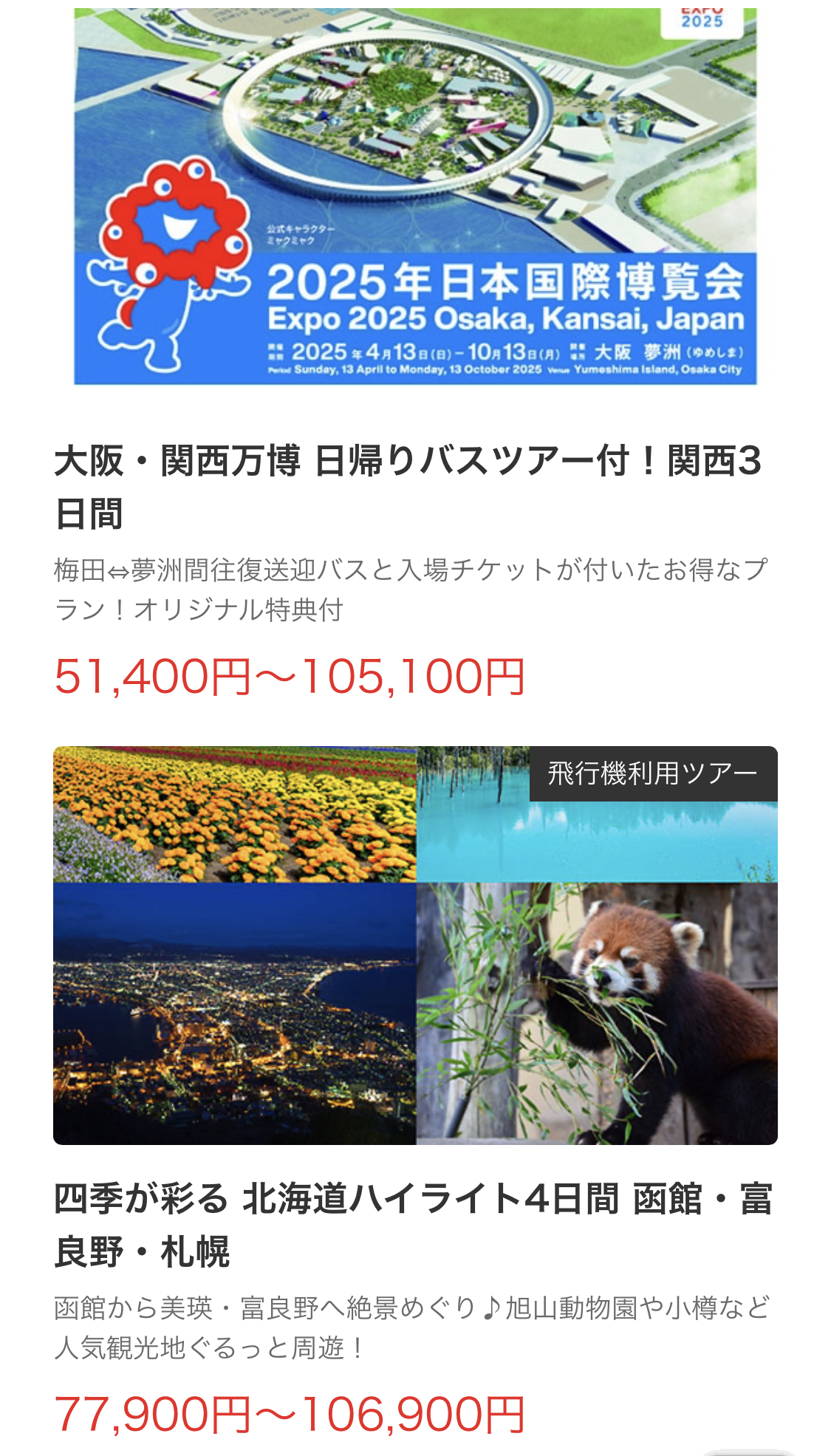 豊富な旅行プラン:国内外のツアーやパッケージプランが充実。